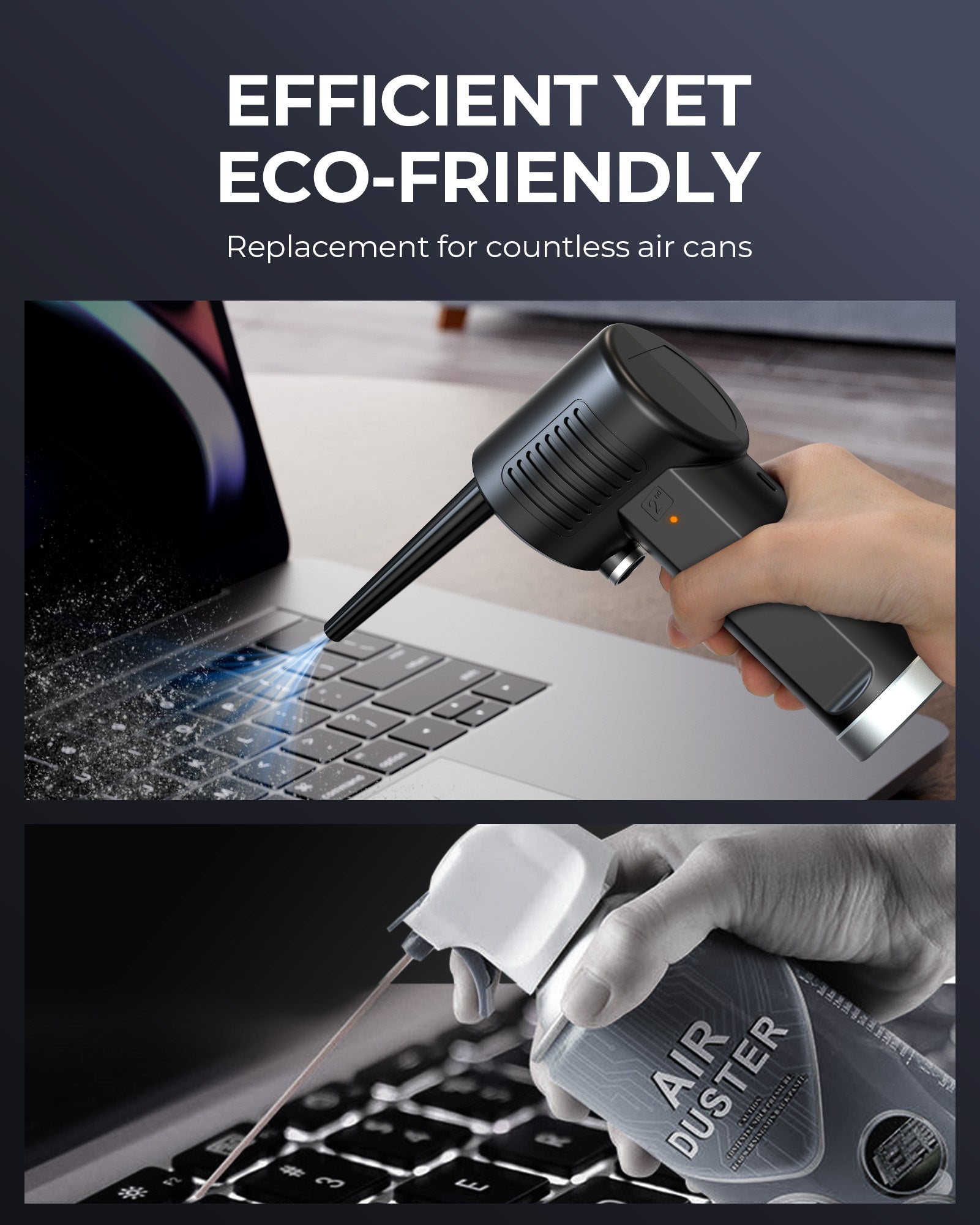 - Scientific ergonomic design make it super easy to use and you will no longer holding a cold can when blowing things away. More comfortable/cost-effective than constantly purchasing canned air